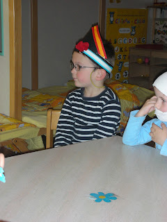 A Bagpiper from Zavod Global in the kindergarden... with the bagpiper hat...